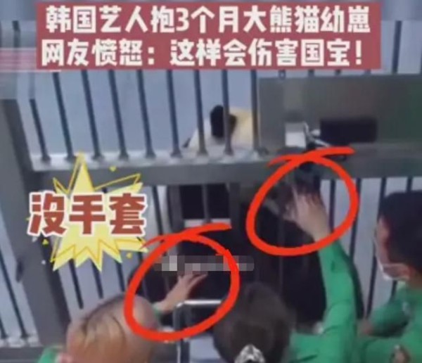 韩国女团成员徒手摸熊猫亲幼崽,脑残粉喊话怕抓了姐姐,争议不断