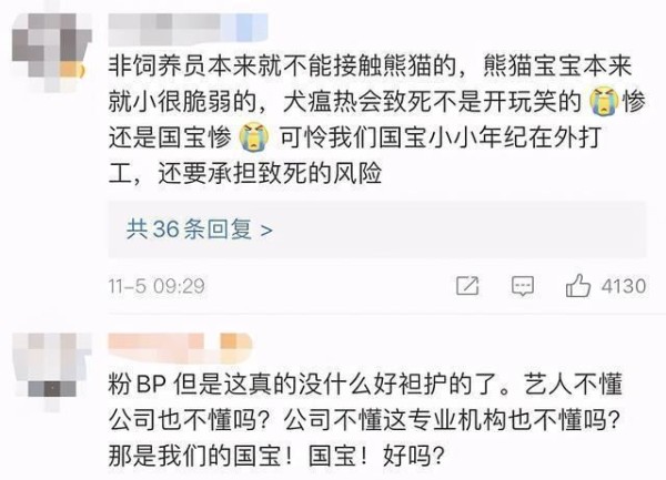 这则预告发布之后引发了全网的热议和声讨。众所周知熊猫是我国的国宝,它们的数量本就很稀少,生活更是需要在专业饲养员的悉心照料。此外因为人身上的病菌很容易感染给熊猫导致它们患上犬瘟热等等疾病,严重的话可能会要了熊猫的命,一般人是不允许和熊猫亲密接触的,我国更是明确禁止熊猫商业性近距离接触熊猫,而BLACKPINK女团成员却全员浓妆甚至徒手抚摸、亲吻熊猫,据悉成员当中还有人饲养宠物,这一行为严重威胁了熊猫崽的生命健康。