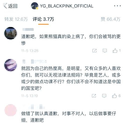 今日,有网友在BLACKPINK的官方微博下留言,要求其就违规接触熊猫事件作出回应并道歉。
