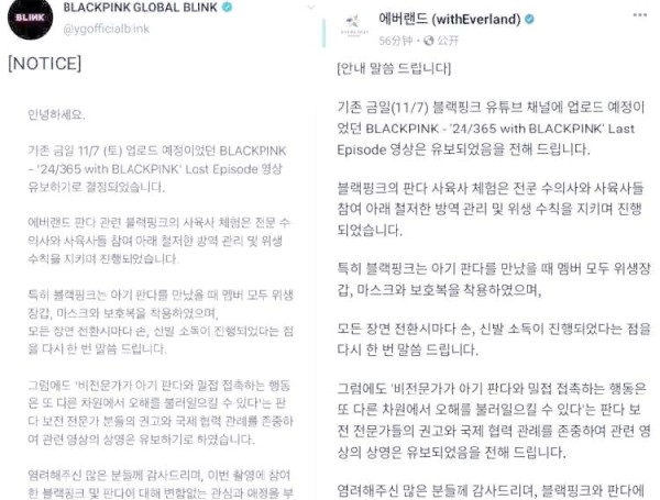 11月7日,事件涉及方韩国爱宝乐园及女团BLACKPINK通过社交媒体同步发表声明,对近期事件作出回应。