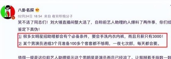 女明星招助理月薪3000,要求手洗内衣裤?明星助理爆料圈内离谱瓜