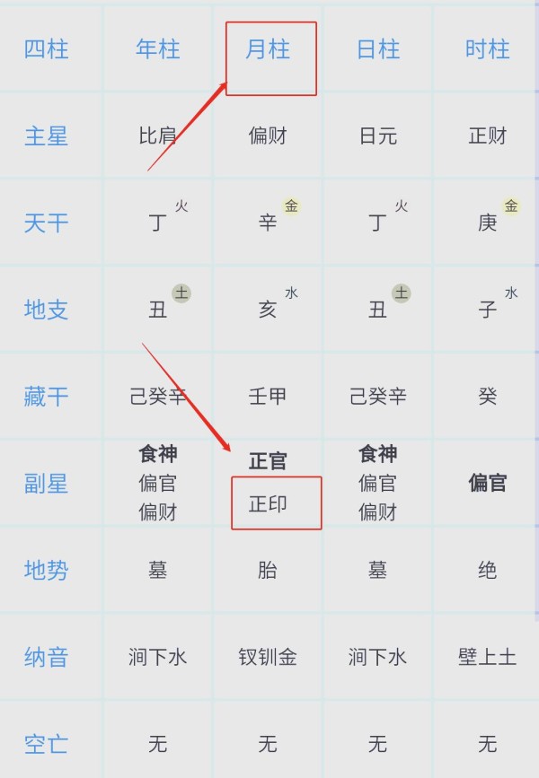 当月支显示为正印或偏印时,这表示夫妻间可能存在某种不协调,因此需要双方共同努力,通过体贴和理解来维系良好的夫妻关系。随着时间的推移,这样的努力将带来稳固而幸福的婚姻生活。