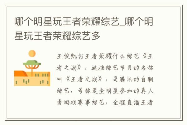 王者荣耀的综艺节目有哪些?(王者荣耀有那些综艺)