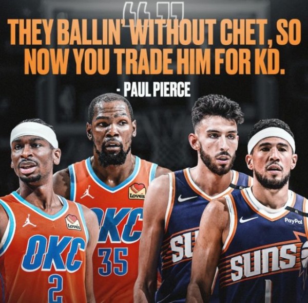 此前,前NBA球星保罗-皮尔斯在接受采访时提出了杜兰特回归雷霆的建议,他认为,雷霆在缺少霍姆格伦的情况下,依然能表现出色,或许可以通过交易霍姆格伦换来杜兰特,为球队带来更强的竞争力。