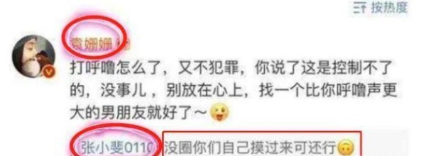 过了一会之后,袁姗姗居然向旁边的男同学提出了一个问题,张小斐睡觉是不是打呼噜。男同学听到这个问题,直接就疑惑了,连忙说自己不知道。这期节目播出之后,张小斐发了动态来回应,说自己真的不打呼噜。最为离谱的是,袁姗姗还跑到下面评论,打呼噜也是没事,找一个比自己呼噜声大的男朋友就行了。这波操作也让网友们很迷惑,人家张小斐回应了不打招呼这件事,也没有圈袁姗姗,袁姗姗为什么还要多此一举去评论呢。