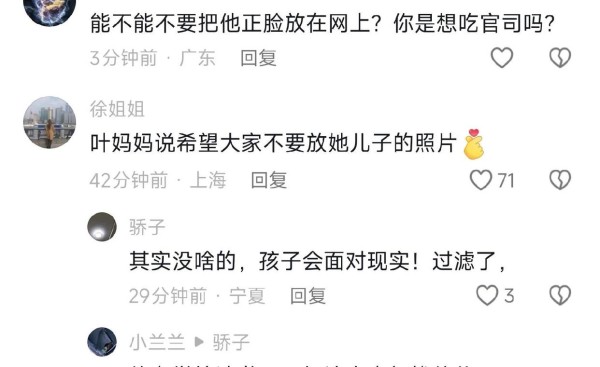 有网友发现有人把叶锐聪没戴口罩的照片曝光后,很多人纷纷提醒他赶紧删掉。叶锐聪的妈妈邓惠东都说了别发出去了,可对方还是坚持要发,真让人怀疑他们到底是来送祝福的,还是纯粹为了蹭流量的。