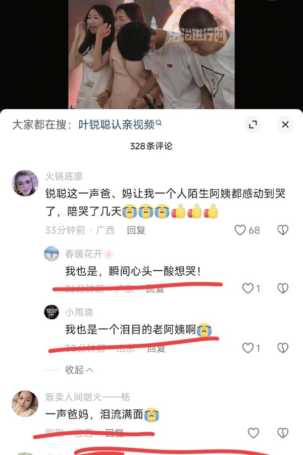 这位网友说他在上厕所时,正巧看到了叶锐聪认亲那个最感动的瞬间,他居然在厕所里哭得都用完纸巾擦眼泪了!