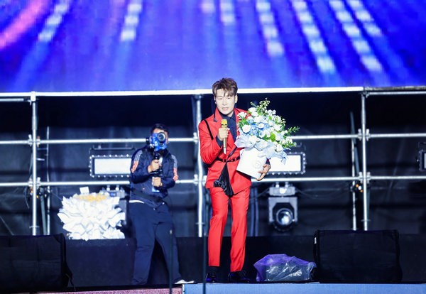 当天一身红衣服亮相的陈雅森也带了自己的经典曲目,《下辈子不一定还能遇到你》的音乐响起,荧光棒、闪光灯摇摆聚焦,瞬间全场大合唱,也将整场演唱会推向一个小高潮。魅力璀璨的台风与婉转动人的嗓音深入人心,台下四面八方赶来的歌迷举着写有陈雅森名字的横幅,来为他们心中的偶像加油打气。如此近距离的听到陈雅森的现场,听到自己喜欢的音乐,真的是一件幸福的事情。
