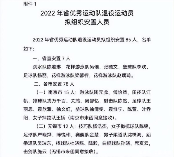 总算是天无绝人之路,最近一段时间,江苏省体育局就公布了一份文件,而这一份文件也将直接关系到陈若琳往后的职业生涯。文件显示,此次江苏省拟安置的运动员一共有85人,其中有7人被安置在省直,剩下的78人一律安置在各市,其中,省直安排的名单中,第一个名字就赫然写着陈若琳三个大字。那么,在陈若琳进入江苏省体育局后,她就可是在编人员了,而对于陈若琳来说,这无疑也是“升官”了,我们暂时还不知道陈若琳将会担任具体职务,但是按照她的资历和成绩来看的话,她的职务应该不低!