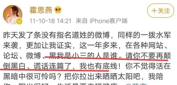 起初,公众的舆论偏向支持黄奕,霍思燕反倒成了“插足者”的骂名主角。不过,霍思燕并没有装作无事发生,她反其道而行,在社交平台上直指黄奕,指控她雇佣水军、颠倒黑白、撒谎不断,还大声喊话要她“到阳光下来”讲清楚。