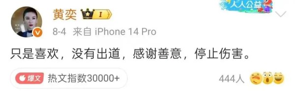 因此,黄奕的评论区很快陷入一片混乱,她以前靠几档综艺节目慢慢累积起来的好感,也在这次风暴中一点点耗尽。每次她试图解释,似乎都在为自己的“绯闻”添油加醋,再添一笔。
