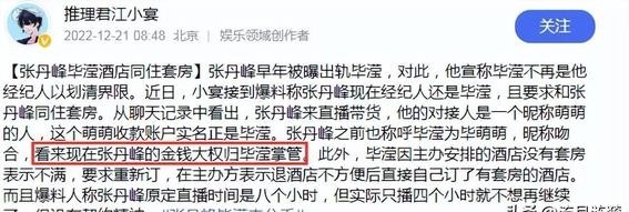 张丹峰和经纪人并无其他关系,毕滢发千字澄清,妻子洪欣力挺