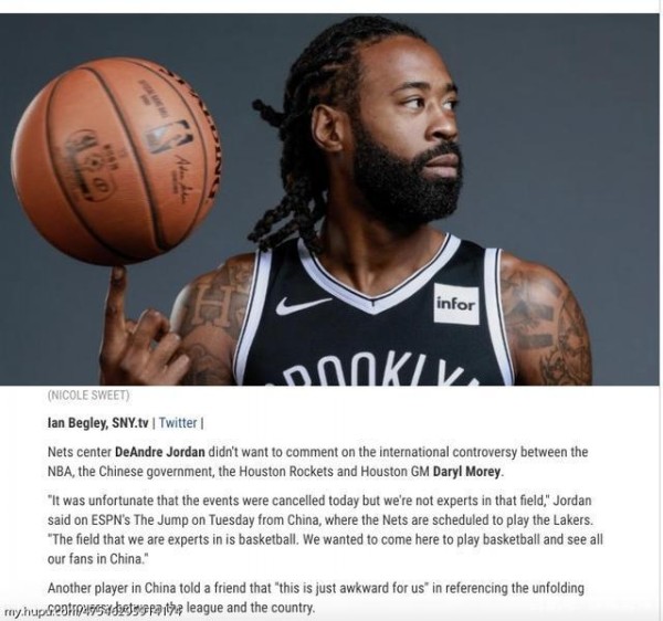 今天正在上海准备参加中国赛的篮网球员小乔丹,他在接受采访的时候却表达了自己的意思。小乔丹这样强调:“很不幸今天在中国的活动都被取消了,但我们不是这个领域的专家,我们擅长的领域是篮球。我们想要来这里打球,与我们在中国的所有球迷见面。”