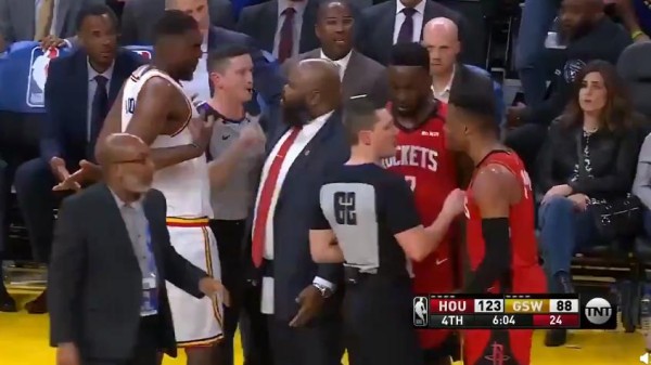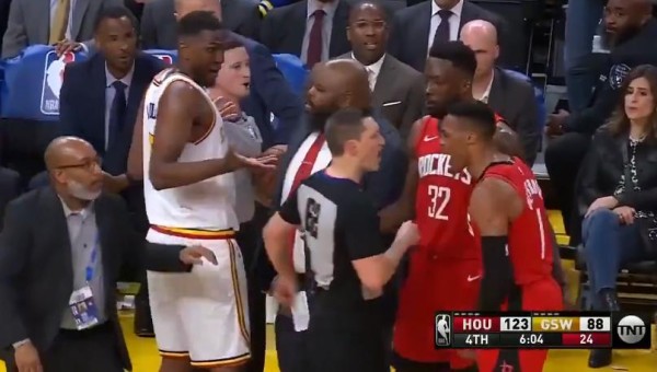 威少被驱逐细节,爆发两次冲突,和克莱互喷,哈登保安也冲过去