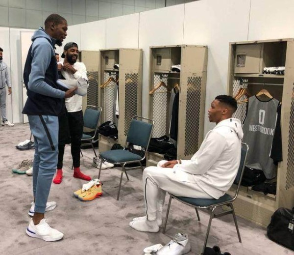 冰释前嫌?同处詹姆斯战队,杜兰特和威少开始重新交流了!