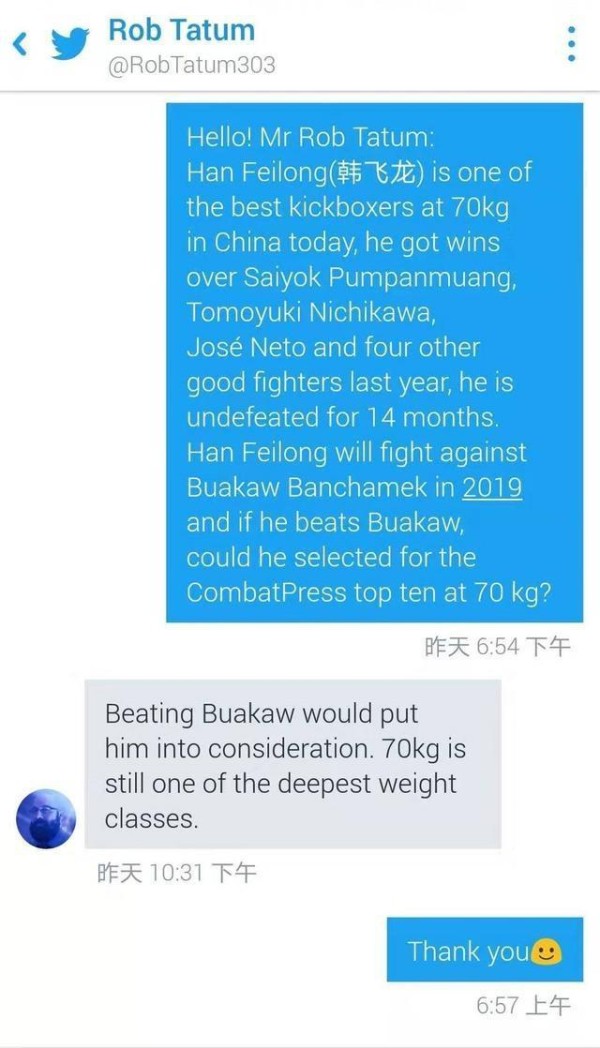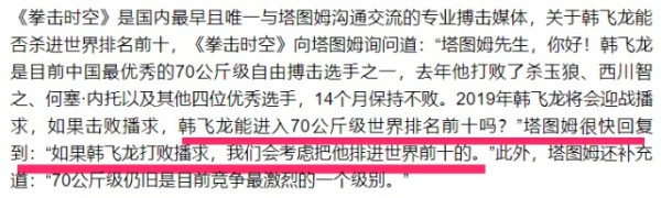 韩飞龙击败杀玉狼后,直指世界排名,官方做出回应