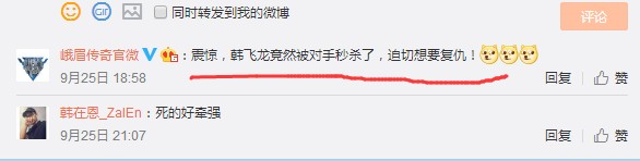 而峨眉传奇官方则在其下方调侃道:“震惊,韩飞龙竟然被对手秒杀了,迫切想要复仇!”而一位拳迷则对韩飞龙的演技作出了评价:“死得好牵强。”
