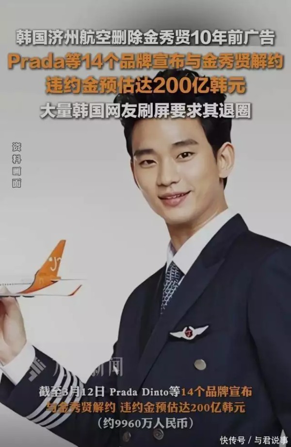 仅仅两天的时间就将近有20万粉丝脱粉,这还不是最重要的,最重要的是,已经有14个品牌宣布和金秀贤解约了,金秀贤需要支付200亿韩元的违约金,另外,连金秀贤拍摄的综艺节目也遭到了影响。
