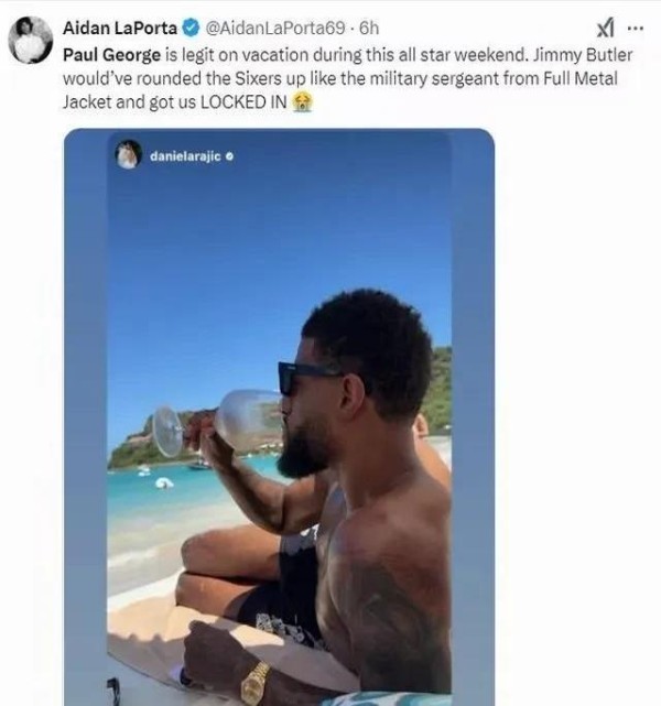 情人节那天,乔治在社交平台上晒出了一段烛光晚餐的浪漫视频,带着甜美的微笑和情侣的甜蜜,他让全世界看到了什么叫“浪漫不打烊”。“论浪漫,他是专业的”,不负顶薪合同。两天后,又是香槟,海岛,和一片蓝天。大家看着屏幕上的乔治,仿佛进入了一个不同的世界——他是度假博主,而不是76人的顶级球员。