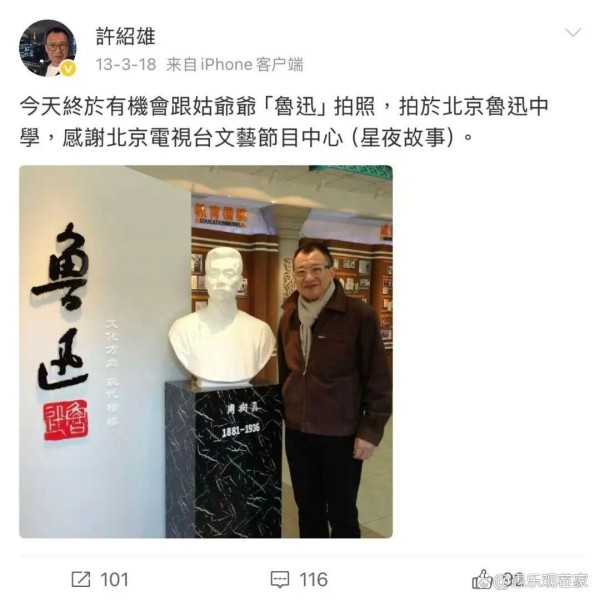 港星许绍雄被曝是鲁迅侄子 83版射雕演朱聪