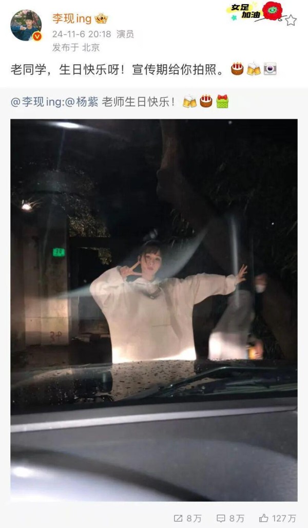 这一传统始于2018年。那一年,李现与杨紫共同出演电视剧《亲爱的,热爱的》,虽未立即爆红,但已建立起默契的合作关系。从那时起,李现每年都会在杨紫生日当天发文,用“老同学”称呼她,语气亲切却不逾矩。2021年,他写下“老同学,生日快乐呀!宣传期给你拍照”,并附上一张为杨紫拍摄的照片。这句话后来被他在2024年原样转发,形成一种仪式般的延续。