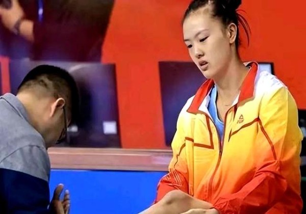 好巧不巧,张常宁也正好在那儿恢复训练。