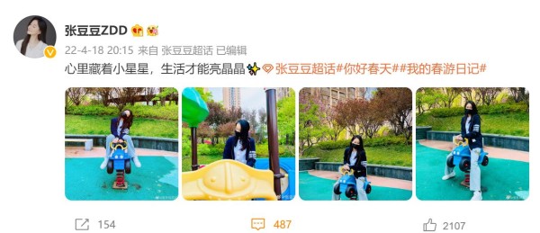 4月18日,中国艺术体操教练张豆豆在个人社交平台更新动态,晒出自己在小区内玩耍的照片,并且配文写道:心里藏着小星星,生活才能亮晶晶!照片中,张豆豆身穿蓝色上衣、浅色的牛仔裤,坐在弹簧摇摇车上,再加上她可爱的表情、动作,仿佛一下子将记忆拉到童年时期。不过,绝大多数的网友都将注意力放在了张豆豆的颜值、身材上面,在评论区大肆地称赞。