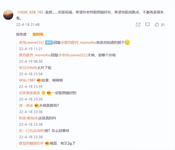 原来,在评论里,有不网友都提到了一个人:孙先生。有网友还直接表示:祝福,希望孙老师能够照顾好你,希望他能成熟点,不要再冒失鬼。而在这条评论下面,有网友就直接点出了孙杨的名字。