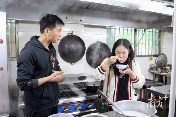 “回去之后也要在家里做这道菜!” 吴永华和曹金茹品尝了刚刚出锅的蟛蜞肉丸粥,都对这道菜的美味赞不绝口。