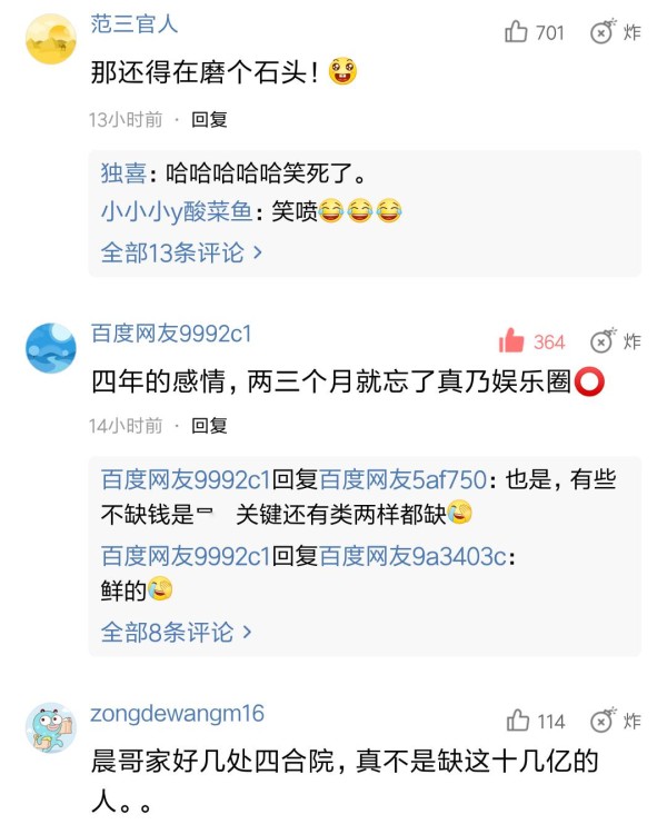 还有的网友调侃道:“还得再磨个石头”;“心形石头已下单”;“范冰冰果然是赔了夫人,又折’冰’”。