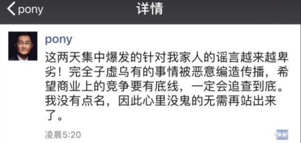 有意思的是,马化腾在辟谣中指出,“希望商业上的竞争要有底线”,疑在指此事可能是竞争对手的恶意抹黑。