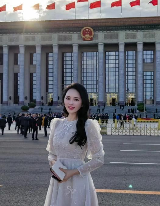 伊能静国庆招待会惊艳亮相,人民大会堂前留影
