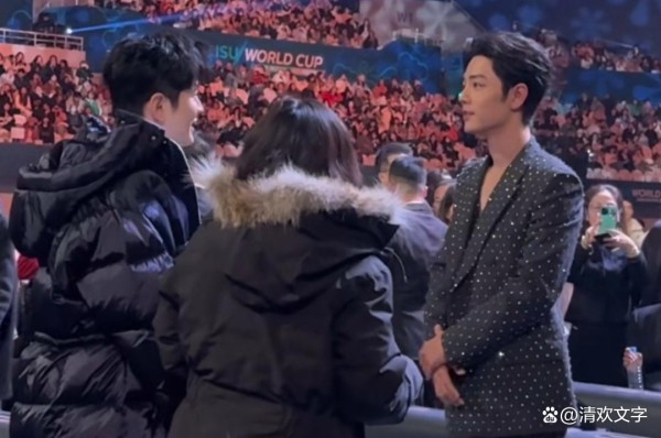 肖战入座后前排的黄晓明主动和他说话,两人被媒体拍到场内笑脸交谈,然后黄晓明和肖战比腰围登上了微博热搜。肖战和黄晓明虽然没有影视上的合作,但是肖战之前的一些公益上和黄晓明有交集,想来也是认识的。只是聊腰围也是非常不当外人了。
