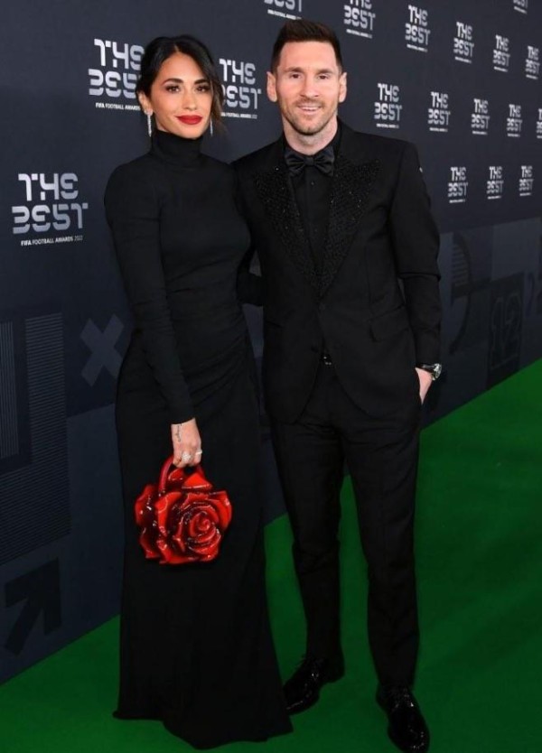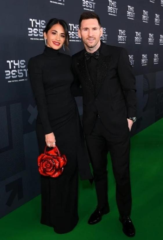 回顾:梅西夫妇穿情侣装领奖!35岁安东内拉拎着玫瑰花手包