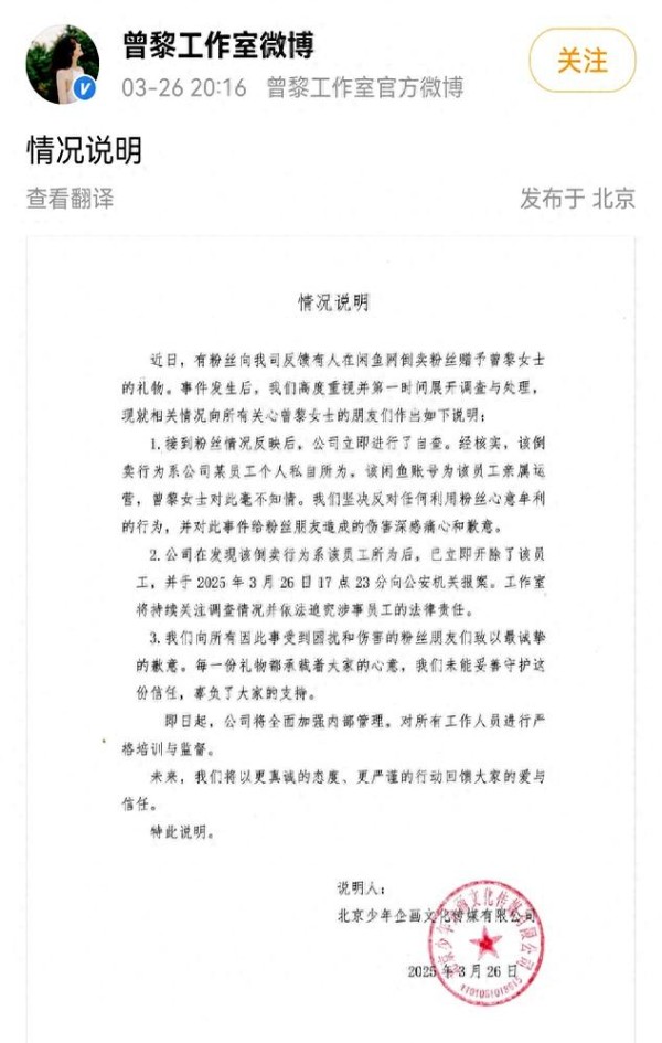 曾黎粉丝礼物遭倒卖引争议:明星团队信任危机如何解?