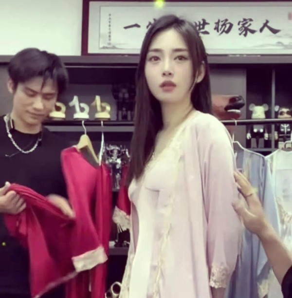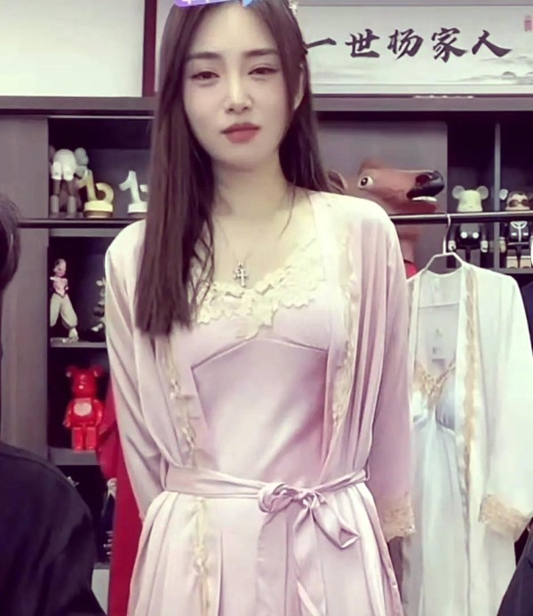 在直播中,小杨哥指导女模特如何更好地展现这款蕾丝睡衣的魅力。当女模特穿上睡衣后,他让她站在镜头前,双手背后,以展示睡衣的全貌。这款睡衣虽然相对宽松,但设计十分巧妙,特别是腰间的腰带设计,既实用又具装饰性。如果女性希望睡衣能更贴合身材,只需简单地将腰带系在腰间,便能轻松勾勒出曼妙的身姿。这种设计虽不新颖,却历久弥新,经典之作无疑。为了进一步证明这一设计理念的实用性,小杨哥亲自为女模特系上腰带,尽管女模特的表情透露出些许无奈,但她并未拒绝小杨哥的好意。睡衣设计经典,通过系上腰带能更好地展示身材,吸引观众注意。