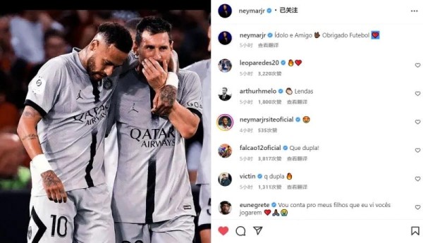 或许正是因为彼此珍视双方的友谊,北京时间8月23日,内马尔在社交媒体上公开表白梅西,他在两人的合照后配文:偶像和朋友,感谢足球!可谓深情满满。