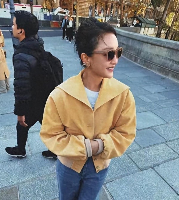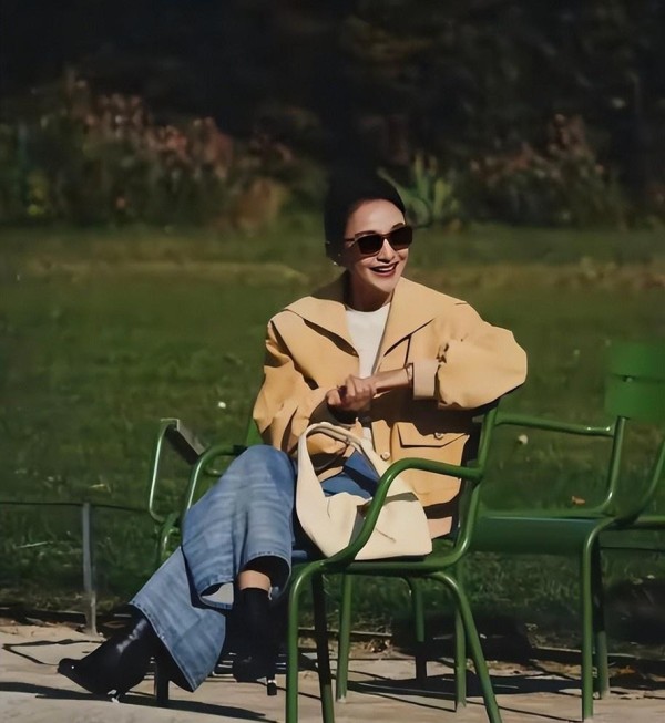 那天巴黎的天有点亮,风从塞纳河那边吹过来,她穿着米色的廓形夹克,配深色牛仔裤,步子不快不慢,像在找一家咖啡店