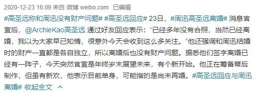2020年12月23日,突然之间,有女子发出了与高圣远的亲吻照片,那个时候,他跟周迅还并没有公开承认离婚,在这件事情之后,双方发布文章宣布离婚。