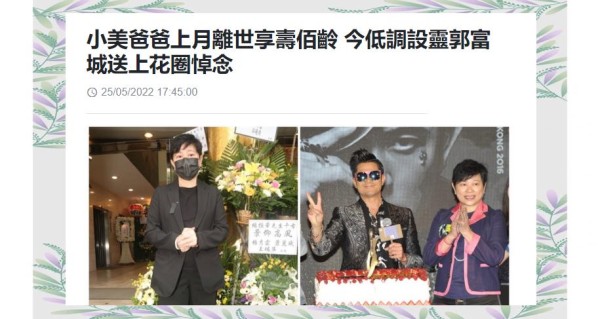 小美父亲追思:明星慰问与小美与郭富城的深厚情谊
