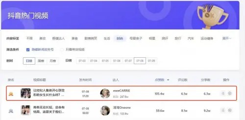抖音∶731.2w 微博∶1198w西瓜视频∶731.1w 小红书∶10.9w