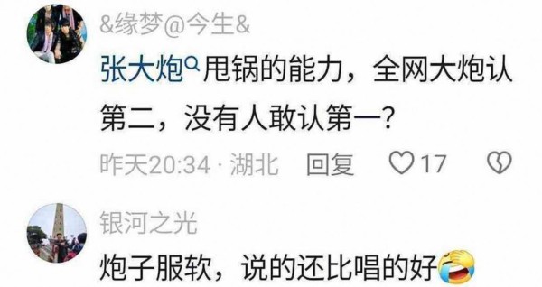 我刷了刷评论区,网友们也是炸开了锅。有人说,张大炮这波操作太绝了,这才是成年人的处理方式,成熟,大气。还有人说,他这是看风向变了,知道不能再这么撕下去了,所以赶紧服个软,曲线救国。更有甚者,直接联想到他最近的事业发展,说什么“这个时候需要团结”,这种猜测,听起来虽然有点阴谋论的味道,但也不是完全没可能。毕竟,娱乐圈这地方,风水轮流转,谁也说不准什么时候需要抱团取暖。