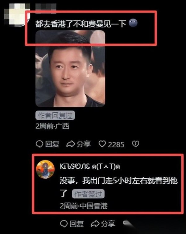 有次杨阳洋在网上发视频,有网友问他“来香港怎么不去找费曼”,结果费曼自己跳出来回,“走五小时就到,没事。”