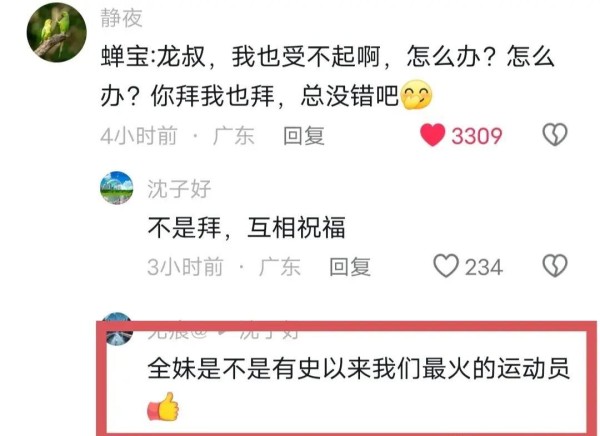 在这些评论中,不难看出网友们对于全红婵和樊振东的喜爱,甚至可以说是“追星”的热情。这样的热情不仅仅局限于对偶像的崇拜,更多的是对他们背后辛勤付出的理解与认可。成龙作为一位影响力巨大的明星,能够在这个时刻站出来为年轻运动员鼓掌,无疑为他们增添了更多的光环和支持。这种跨界的交流,让我们看到了体育与娱乐之间的微妙关系,两个领域的交融让人感受到不一样的火花。