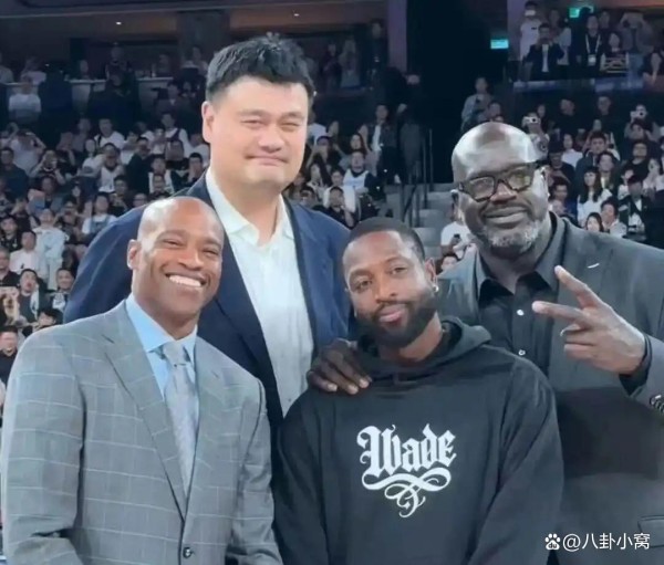 从成龙晒出的照片看,他与三位体坛巨人的站位充满戏剧性。其中一张合影中,姚明与奥尼尔分列两侧,成龙被“夹”在中间,不得不仰头露出夸张的惊讶表情,而贝克汉姆则站在最右侧,四人笑容灿烂,形成“凹凸”的身高曲线。另一张照片中,成龙与奥尼尔、姚明并排而立,身高差距更显悬殊,网友戏称“龙叔瞬间变迷你手办”“奥尼尔和姚明简直是两座移动的‘巨人塔’”。