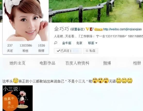 可金巧巧却曾深陷“小三”风波,更是被指“小三专业户”,金巧巧面对这些流言蜚语,始终竭力否认。