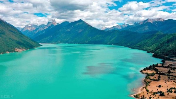 游览巴松措,湖水清澈见底,四周青山环绕。可以选择乘船游览,感受湖光山色的宁静与美丽。