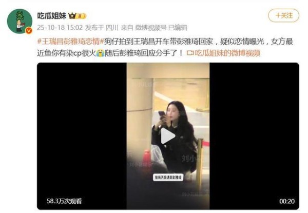 王瑞昌彭雅琦官宣分手王瑞昌驾车带彭雅琦回家被曝恋情!女方官宣分手疑似炒作