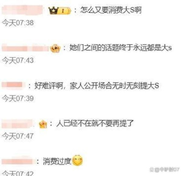 一些网友认为,小S一家在舆论场上的操作已经让公众开始疲惫,频繁提及大S不仅让人产生反感,也可能对她们的家庭形象造成损害。真正的亲情应当自然流露,而非成为话题的工具。