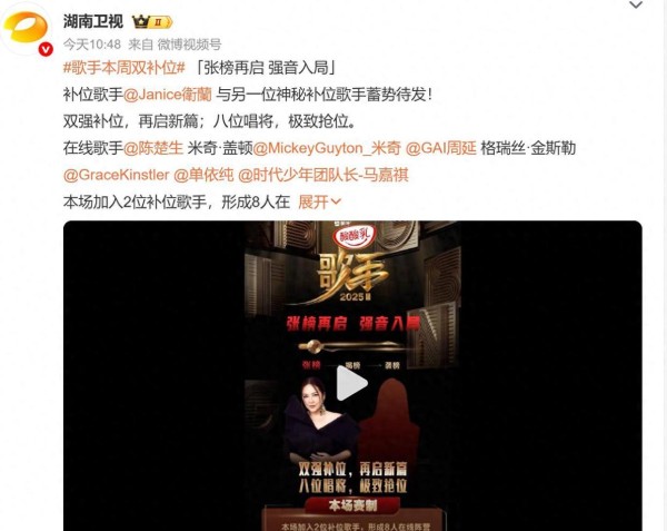 湖南卫视并没有将范玮琪和卫兰放在同一条官宣信息中介绍,这个细节说明节目组内部对此也存在一定的担忧和顾虑。既然如此,会不会存在先观察观众反应,然后根据舆论风向临时调整人选的可能性呢?